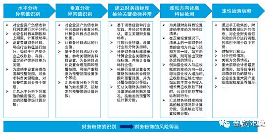 財(cái)務(wù)維度看,可以通過(guò)水平分析異常值、垂直分析異常值、建立分不同行業(yè)的財(cái)務(wù)指標(biāo)庫(kù),并建立財(cái)務(wù)智能化自動(dòng)化分析、財(cái)務(wù)粉飾識(shí)別、會(huì)計(jì)信息質(zhì)量識(shí)別和財(cái)務(wù)健康度評(píng)價(jià),如下圖: