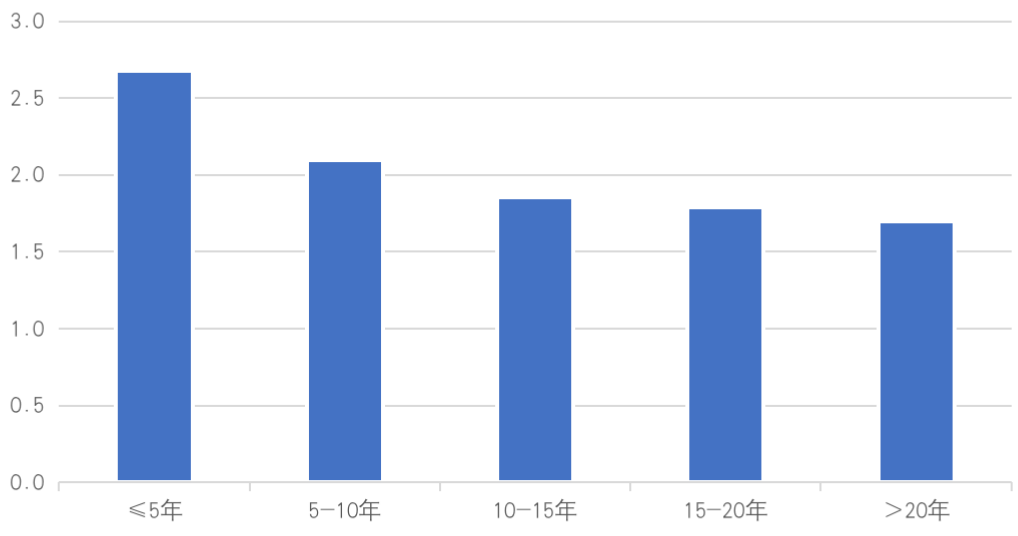 不同樓齡段項目平均物業(yè)費(元/㎡/月)
