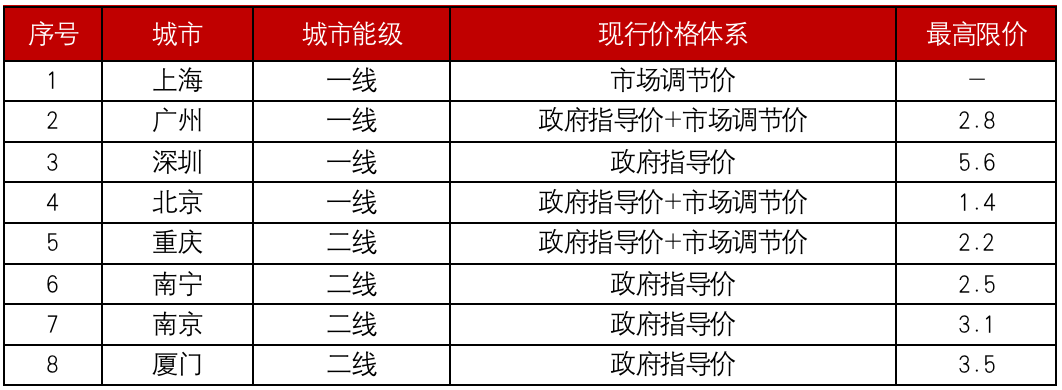 一方面,上海實行市場調(diào)價在全國具有良好示范作用,廣州、重慶等城市在政府指導(dǎo)價基礎(chǔ)上實行市場調(diào)節(jié)價,市場化價格體系正逐步推行。
