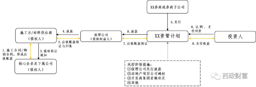 (2)西政保理向施工方、材料供應商放款,并將該應收賬款債權轉讓給XX資管計劃;