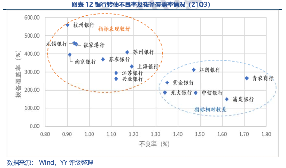 從資產質量、凈息差等多個盈利驅動因子來看,15只銀行轉債正股已經形成一定的區分度,其中南京銀行、杭州銀行、江蘇銀行、興業銀行4家資產規模及質量表現較優,成長性較強;無錫銀行、張家港行、蘇州銀行、蘇農銀行4家成長性尚可,但規模劣勢明顯;光大銀行、上海銀行、中信銀行成長性稍弱,但資產規模較大,資產質量尚可;浦發銀行雖然規模較大,但各項指標均表現較差,資產質量壓力較大、成長性也弱;此外,青農商行、江陰銀行、紫金銀行3家農商行規模小,資產質量偏差,且成長性弱,處境較為尷尬。
