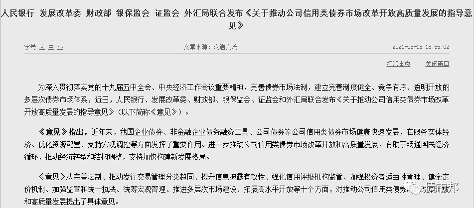 《關(guān)于推動(dòng)公司信用類(lèi)債權(quán)市場(chǎng)改革開(kāi)放高質(zhì)量發(fā)展的指導(dǎo)意見(jiàn)》出臺(tái)振奮人心