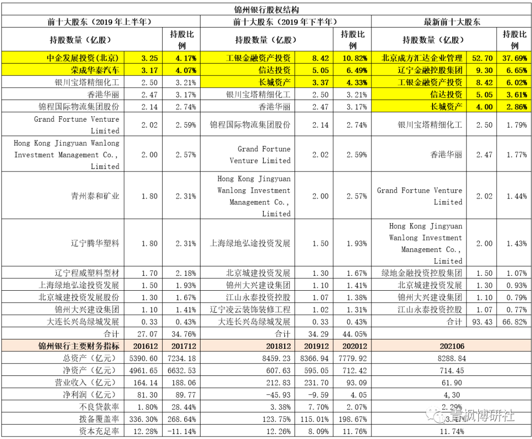 1、和包商銀行另起爐灶不同的是,錦州銀行則是通過債務重組來完成化險改革。2019年,錦州銀行因年報延遲披露等原因而暴露風險,在監管部門的指導下進行改革重組,引入工銀投資、信達投資、長城資產等戰略投資者(持有3.25億股的中企發展投資(北京)與持有3.17億股的榮成華泰汽車前兩大股東退出),并轉讓部分內資股、剝離風險資產、實施增資擴股。