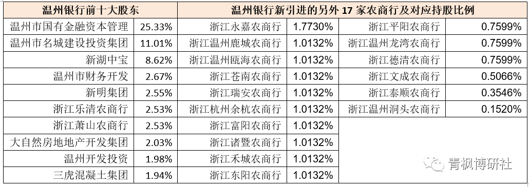(八)溫州銀行:19家浙江本土農商行入股,新湖系由大股東退居至第三
