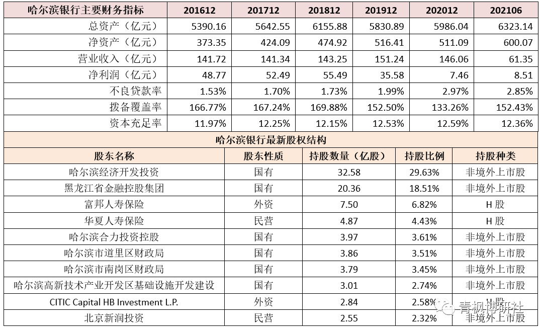 (四)哈爾濱銀行:轉向由黑龍江國企控股