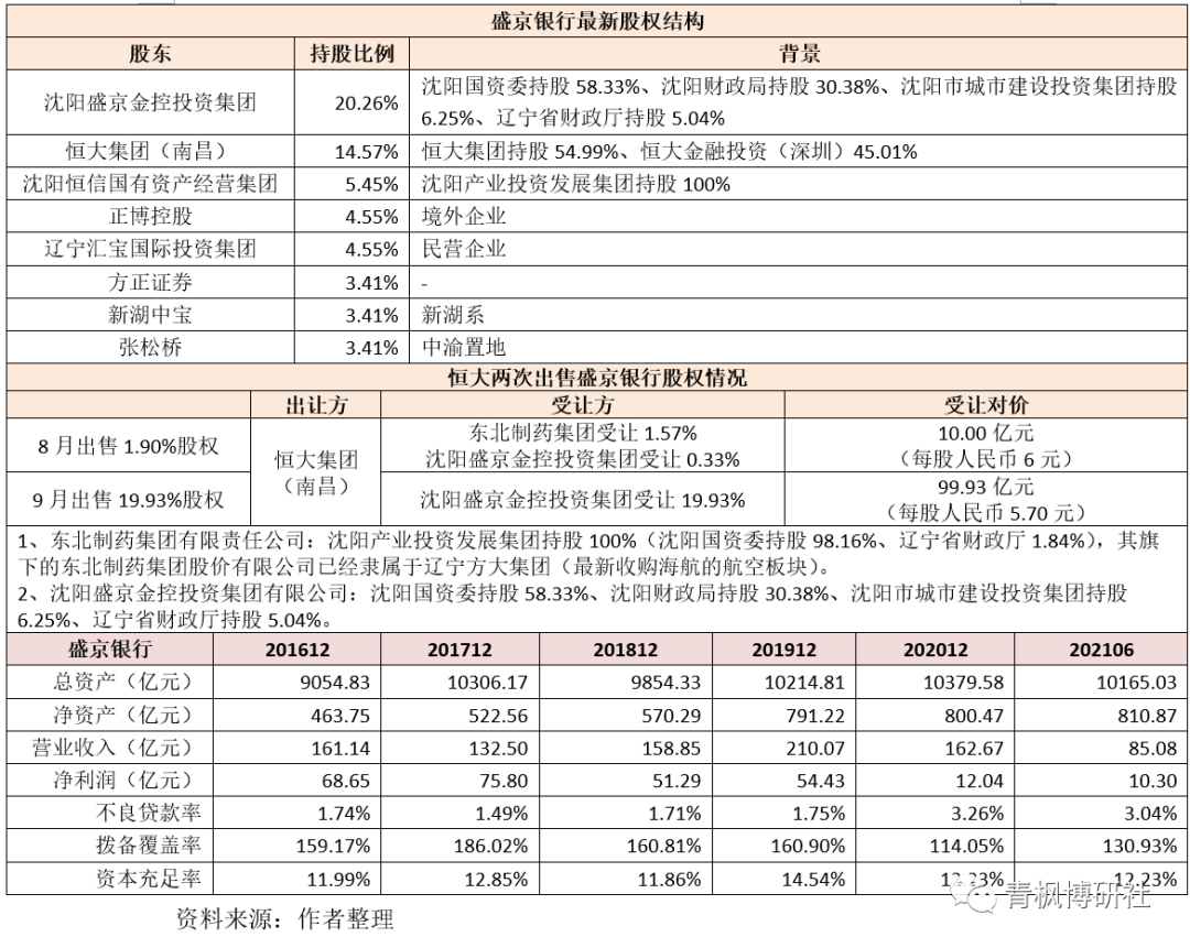 (五)盛京銀行:恒大退出第一大股東序列,當地國資接盤