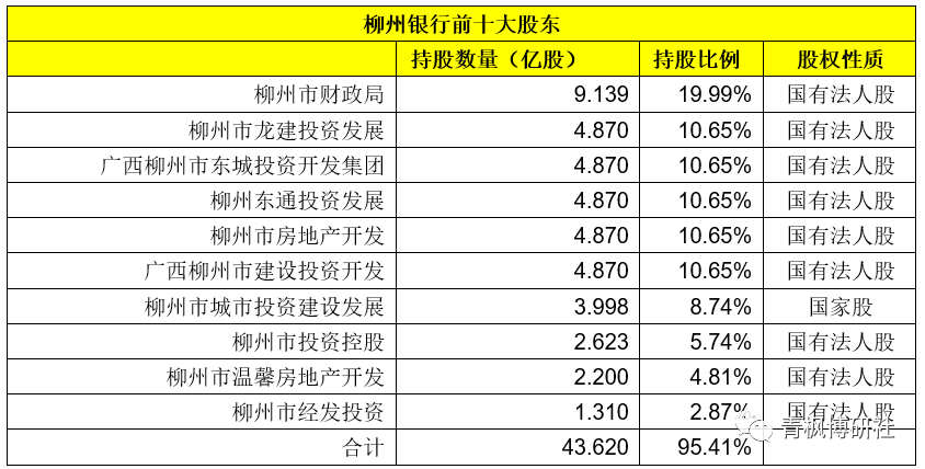 (九)柳州銀行:柳州財政局入主第一大股東,當地國資持股95%以上