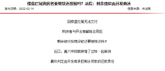 近期, 嘉興市中級人民法院于官網公布的一篇題為《樓盤爛尾購房者要繼續還按揭嗎?