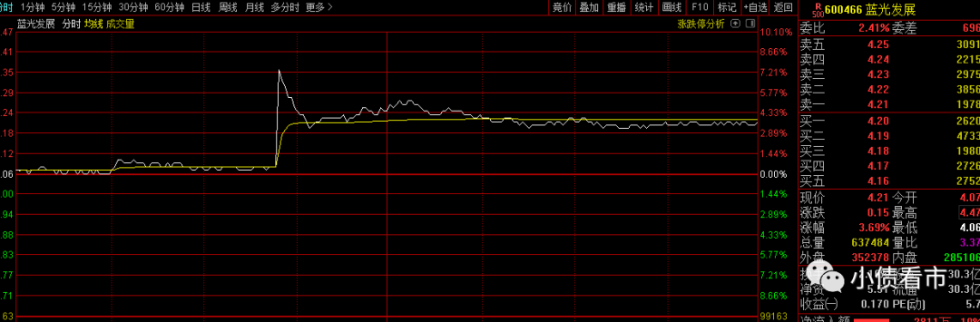 受此消息影響,4月22日早盤藍光發展盤中直線拉升并觸及漲停,隨后股價震蕩回落,成交量明顯放大,收盤報4.21元,漲幅為3.69%。