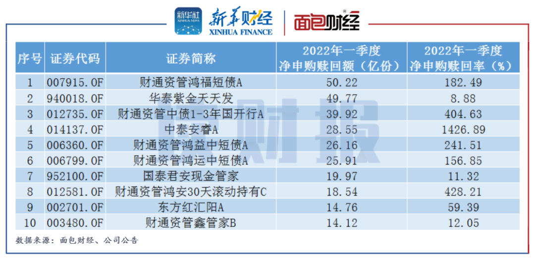 此外,華泰證券資管旗下的華泰紫金天天發(fā)一季度份額凈申購49.77億份,中泰證券資管旗下的中泰安睿A一季度份額凈申購28.55億份。