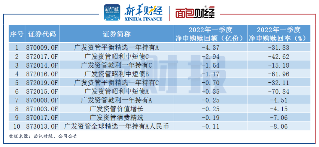 圖4:2022年一季度廣發(fā)證券資管在管基金凈贖回前10只