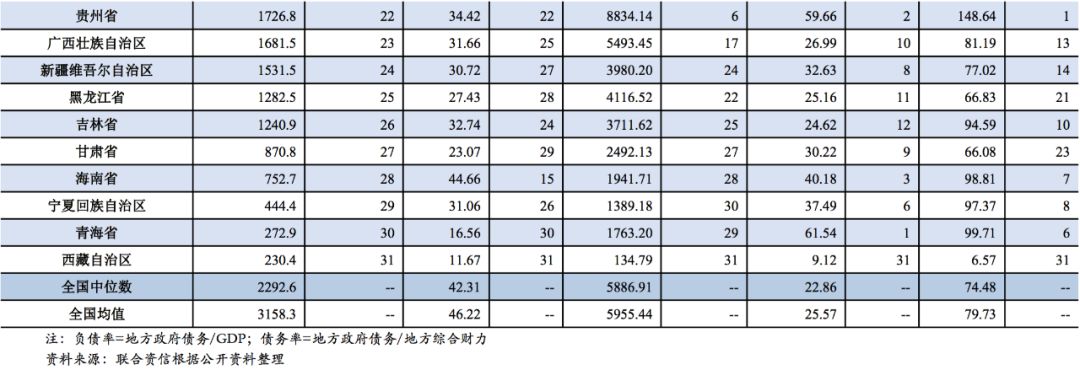 [3]地區債務率=地區債務/(一般公共預算收入+政府性基金收入+上級補助收入)*100%
