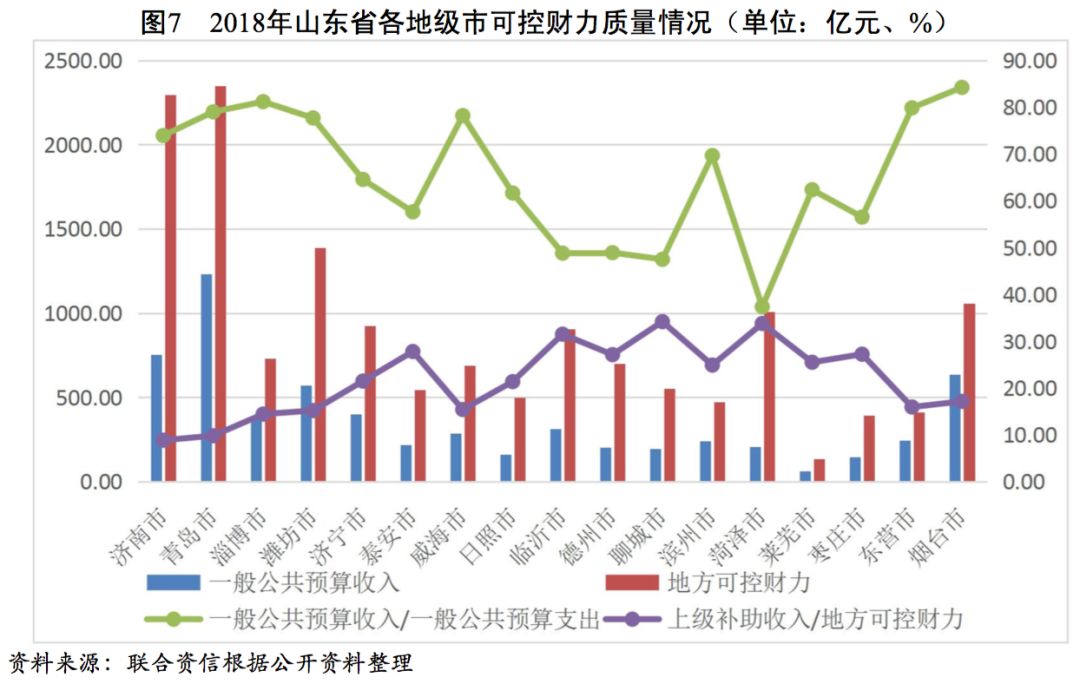 山東省經濟規模處于全國上游水平,2018年GDP排名全國第三,一般公共預算收入排名全國前列,政府債務率處于全國偏低水平,整體債務負擔輕。