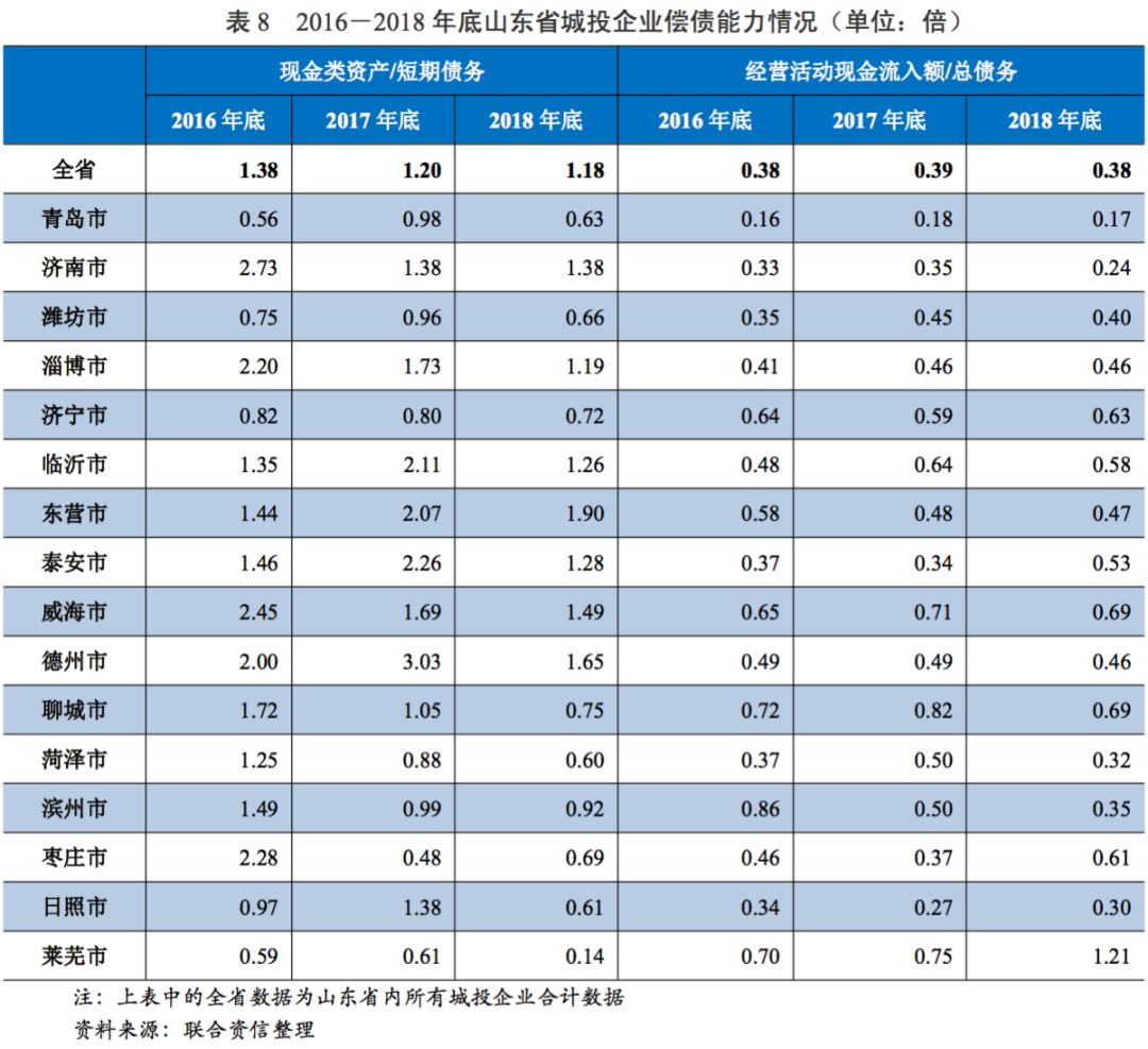 山東省城投企業全部債務高于地方政府債務余額,考慮政府支持后山東省城投企業整體的償債能力一般。
