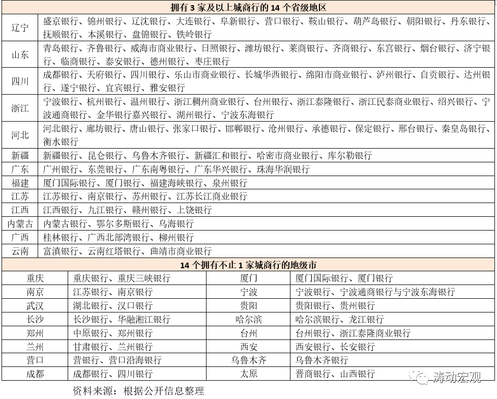 2、另有16個地級市擁有不止一家城商行