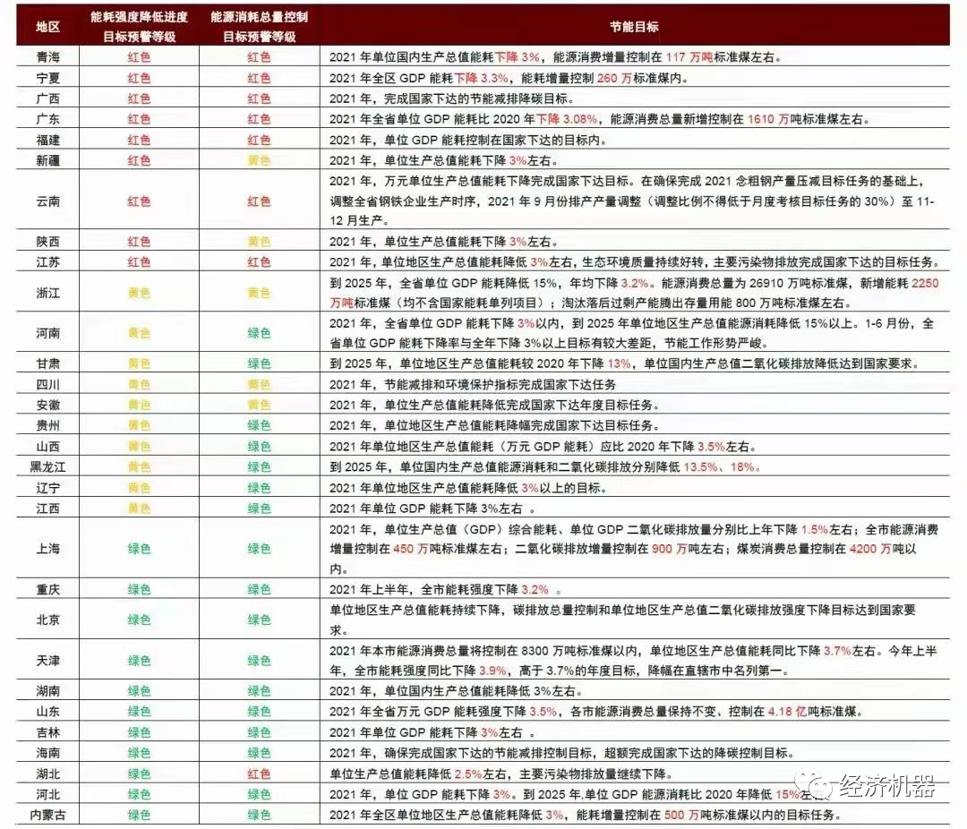 碳中和/碳達(dá)峰。碳中和是國(guó)家對(duì)國(guó)際社會(huì)做出的莊嚴(yán)承諾和“一號(hào)工程”,是無(wú)比正確和具有戰(zhàn)略意義的。正因?yàn)槿绱?,很多地方把其放在“壓倒一切”的?yōu)先地位,尤其在能耗雙控方面,更是沒(méi)有任何商量的余地,哪怕停工停產(chǎn),都必須要完成。如前面所提,由于今年上半年經(jīng)濟(jì)需求不錯(cuò),導(dǎo)致能耗總量出現(xiàn)上升,使部分省份(比如廣東、廣西、江蘇等)能耗雙控完成難度加大,遭到有關(guān)方面約談,導(dǎo)致接下來(lái)的一刀切,比如最近江浙地區(qū)的工業(yè)企業(yè)大面積“斷電”(圖7)。正是看到這種“運(yùn)動(dòng)式減碳”的危險(xiǎn)苗頭,中央在二季度宏觀形勢(shì)研判會(huì)議上提出,不搞運(yùn)動(dòng)式減碳。但很可惜,在強(qiáng)大的慣性和考核硬約束下,運(yùn)動(dòng)式減碳最后競(jìng)一語(yǔ)成讖,實(shí)在令人唏噓。