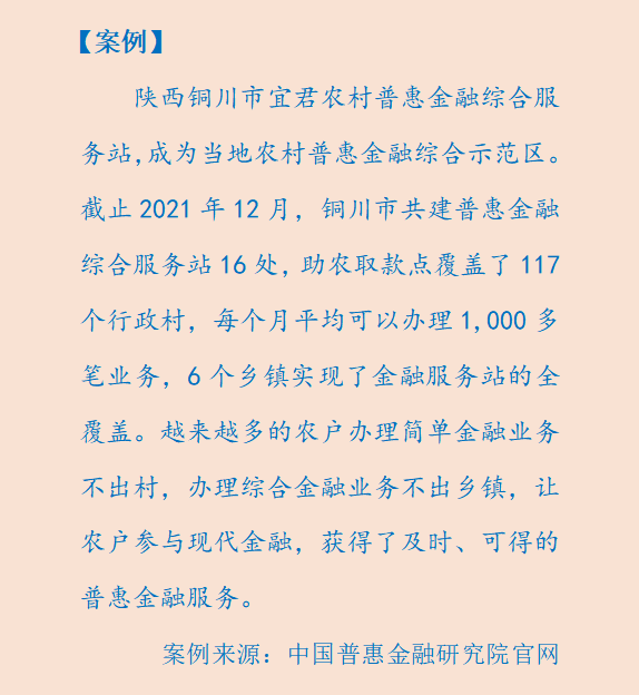 2021年,全國部分金融機構開展了助農取款點逐漸向農村普惠金融服務站轉型工作,不斷優化網點布局,加強農村支付體系建設,改善農村支付環境,取得了階段性成果。