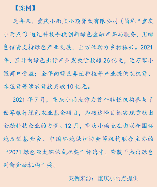 2021年,綠色金融與普惠金融在政策體系、市場機制、技術創新及金融機構內部管理更趨融合,協同推進綠色環保、包容性增長目標的實現,降低了全社會交易成本,防止普惠金融“普而不綠”現象,對我國實現綠色發展和包容性增長具有重要意義。