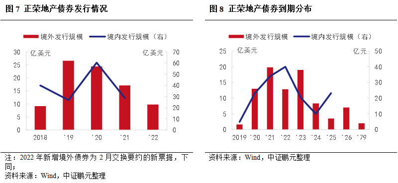 第三,評級調整。2022年2月15日,惠譽將將正榮地產的長期發行人違約評級從B+下調至B,2月21日,繼續下調至C。同日,穆迪將公司企業家族評級由B3下調至Caa2。對于上述交換要約和同意征求,惠譽認定為困境債務重組,3月30日將公司違約評級進一步下調至RD(限制性違約)。