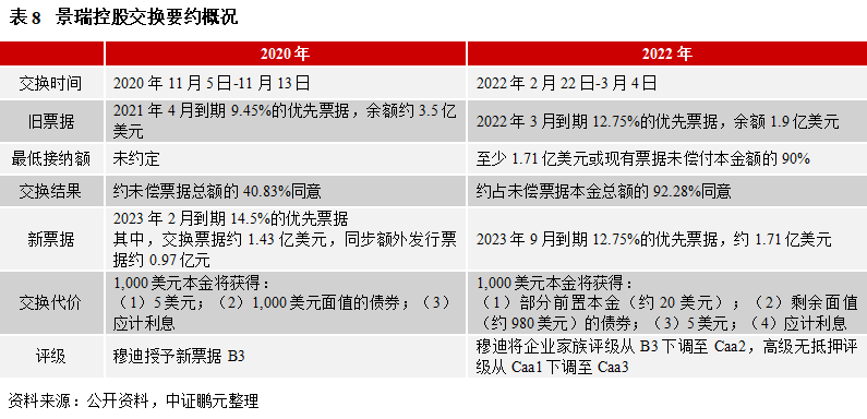 根據2月21日以來交換要約和同意征求公告,有效交回現有票據的合格持有人,視為對同意征求的同意,持有人不能僅同意征求而不同意交換要約,即同意交換要約就表示接受同意征求。交換要約最低接納金額為各系列票據未償本金的85%。同意征求需各系列票據過半數持有人同意,涉及的條款修訂及豁免將對現有票據及未來所有持有人生效。根據公告,交換代價為“等值新票據+應計利息+現金”。新票據為2023年3月6日到期,年息8%的優先票據,同時,公司將在到期日按本金的102%償還全部新票據本金和應計利息。