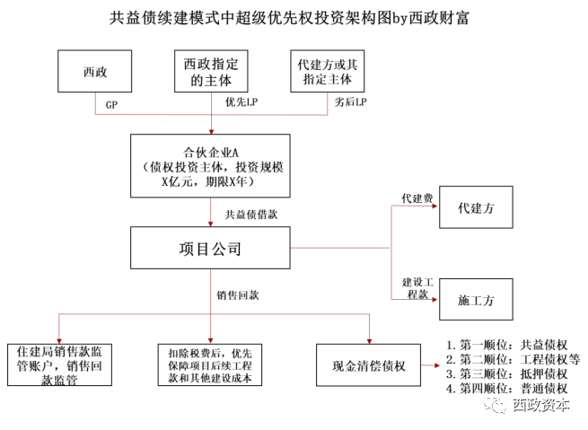 1. 投資架構(gòu):西政(GP)與其指定的主體(優(yōu)先級(jí)LP)及代建方或其指定的主體(劣后級(jí)LP)共同成立合伙企業(yè)A作為超級(jí)優(yōu)先權(quán)投資主體,優(yōu)先級(jí)LP和劣后級(jí)LP按7:3的比例出資,總出資額度不超過約定金額。