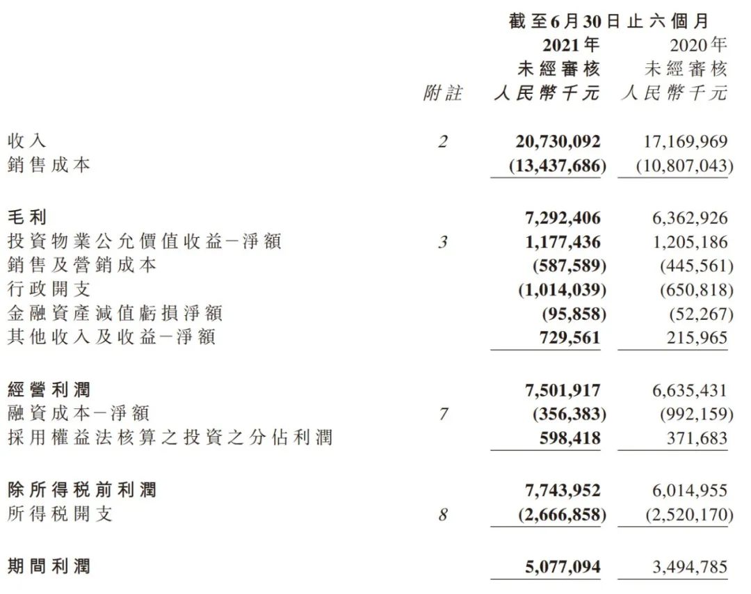 整體營收來看,2021上半年為207.3億元,比2020年同期的171.70億元增加了約20.7%,主要原因是物業銷售增長。