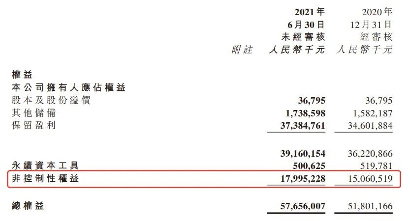 值得注意的是,此前被質疑“明股實債”的少數股東權益,寶龍地產在2021上半年仍在上升,在2020年底的150.6億元繼續增加了接近30個億,到了今年上半年的179.95億元。
