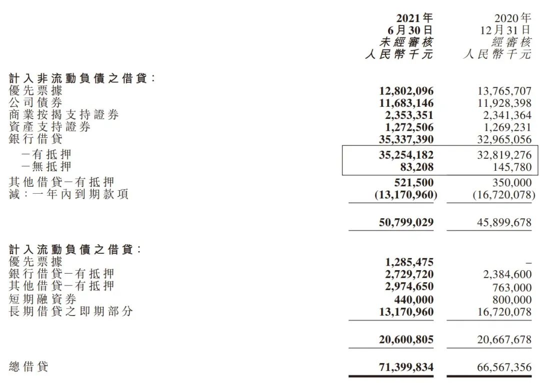 借款呢?報告期內,寶龍地產的借款總額約為714億元,比2020年末的665.67億元增加了7.3%。