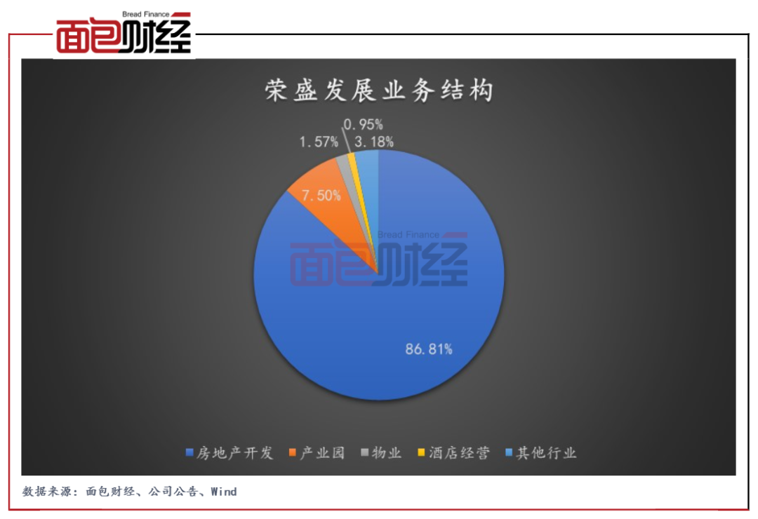 榮盛發展成立于1996年12月,總部位于河北,于2007年在深交所上市。目前公司已初步形成了以房地產開發為主業,貫穿康旅、產業園、酒店、物業、金融等為一體的綜合性全產業鏈業務。2020年,公司房地產開發、產業園、物業、酒店經營、其他行業營收占比分別為86.81%、7.5%、1.57%、0.95%、3.18%。