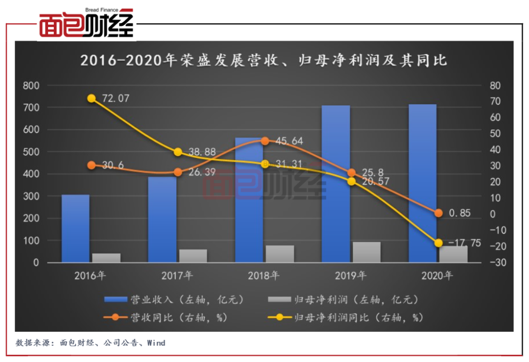 榮盛發展于近日發布2020年年報及2021年一季報。財報顯示,公司2020年實現營收715.11億元,同比僅增長0.85%,營收增速自2018年以來持續放緩;實現歸母凈利潤75.01億元,同比下降17.75%,近五年來首次轉負。