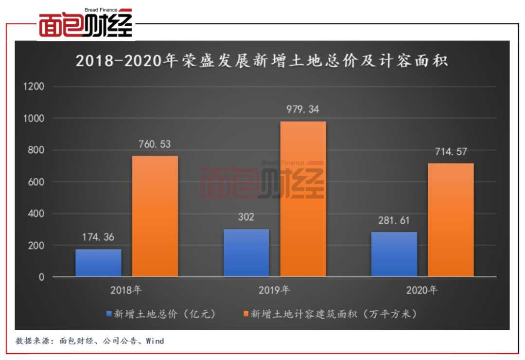 圖4:2018-2020年榮盛發展新增土地總價及計容面積