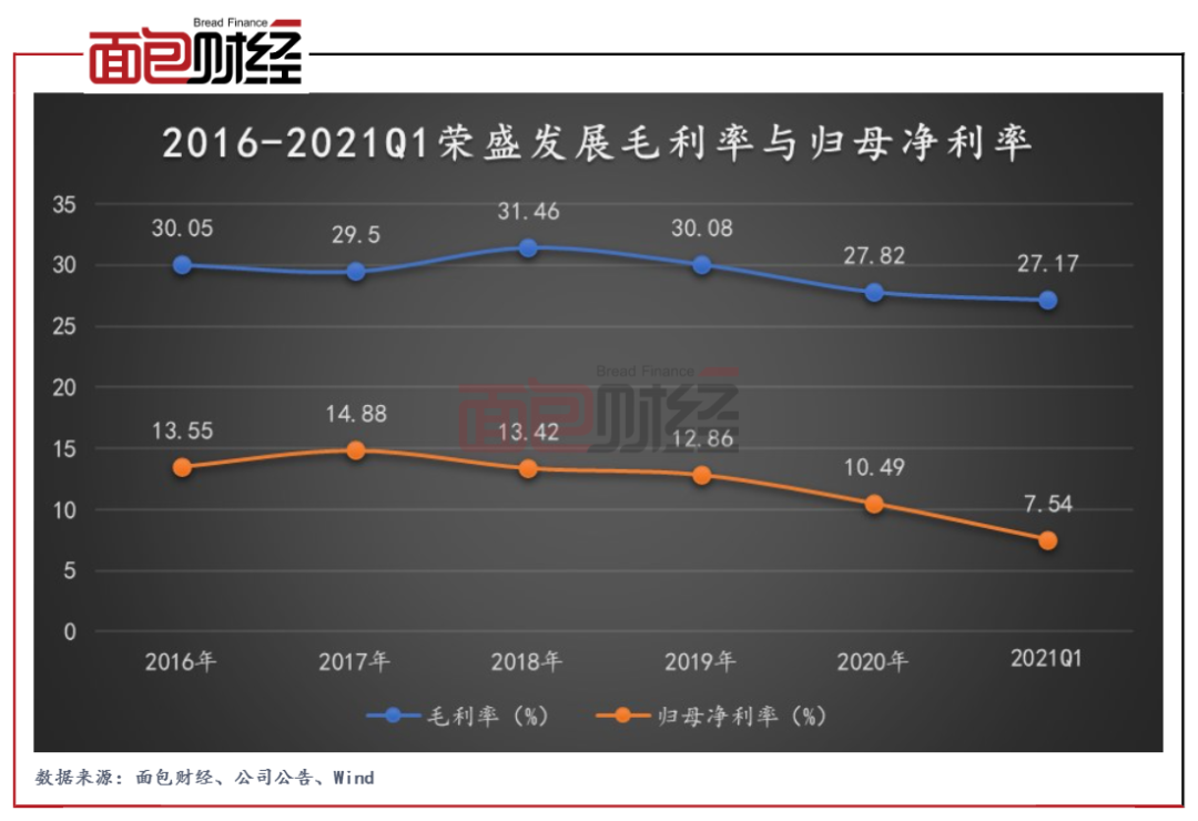 圖3:2016-2021Q1榮盛發展毛利率與歸母凈利率