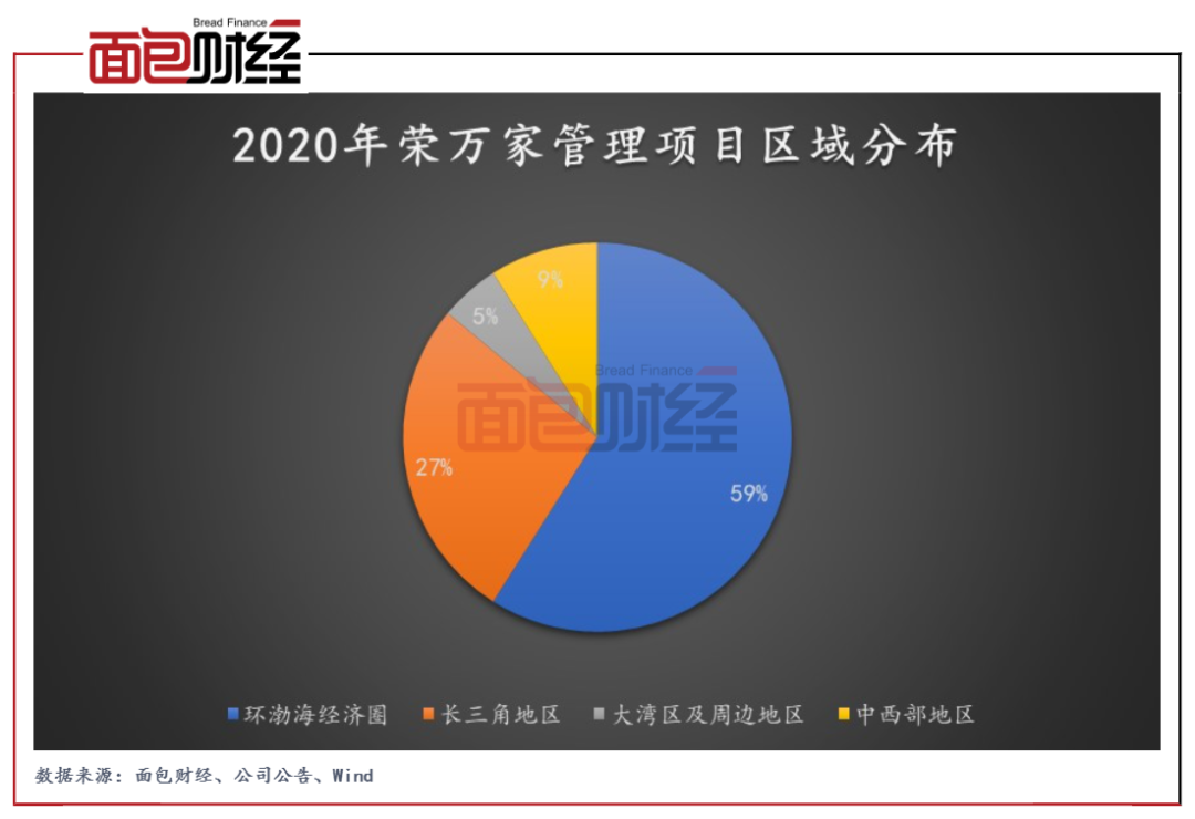 在管項目區域的分布上,按在管項目收入計算,榮萬家環渤海經濟圈占58.9%、長三角地區占27%、大灣區(包括其周邊地區)占5%、中西部地區占9%。