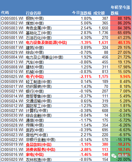 煤炭、鋼鐵、有色、化工和石化領(lǐng)漲兩市,煤炭鋼鐵有色的漲幅超過80%,碾壓光伏新能源、電子芯片和軍工等熱門行業(yè)。