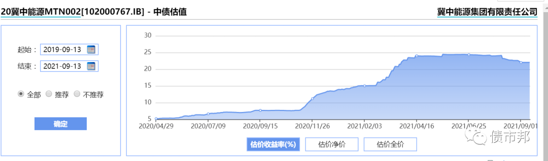但是,債券市場卻還是非??此ィ街心茉醇瘓F(tuán)和冀中能源股份的債券二級市場估值收益率依然在20%+的高位。
