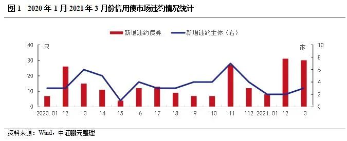 2021年3月,新增違約主體3家,分別是西部航空有限責任公司、重慶協信遠創實業有限公司、冀中能源集團有限責任公司。