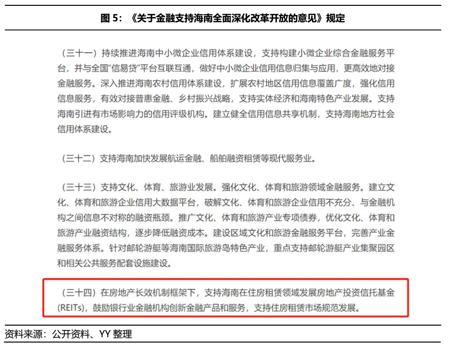 2021年3月20日,在央行等四部門發(fā)布的《關(guān)于金融支持海南全面深化改革開放的意見》中提到:在房地產(chǎn)長效機制框架下,支持海南在住房租賃領(lǐng)域發(fā)展REITs。以此推斷,海南很有可能成為我國商業(yè)地產(chǎn)REITs的試驗田。