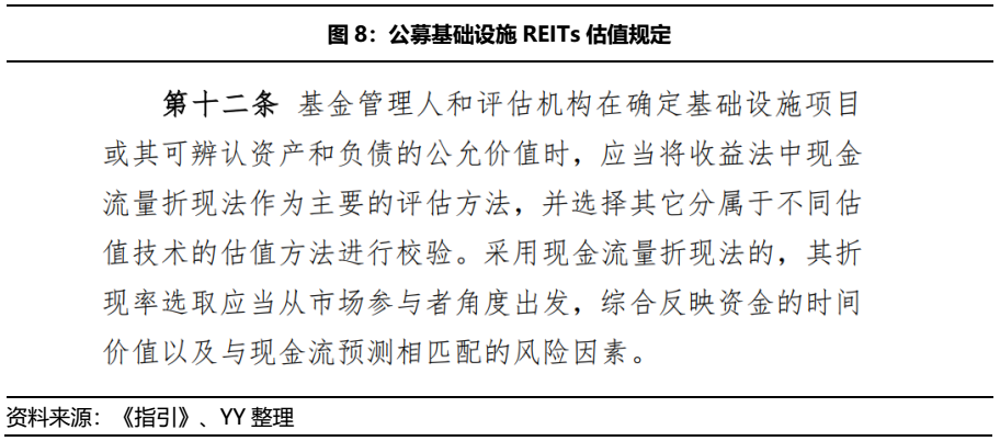 且從投資端來看,可能會存在以下幾個問題:首先,REITs雖然可上市交易,但在流動性不足的情況下,基礎(chǔ)設(shè)施REITs的交易價格可能波動較大。而作為有穩(wěn)定分紅預(yù)期的品種,險資、銀行理財?shù)葯C構(gòu)投資者希望其有一定的固收屬性,過大的估值波動會擾動其投資意愿;其次,根據(jù)規(guī)定資產(chǎn)評估機構(gòu)對基礎(chǔ)設(shè)施項目每年至少進行1次評估,更新REITs凈值,這樣也會造成估值上的較大偏差;最后,公募基礎(chǔ)設(shè)施REITs的底層資產(chǎn)包含很多特許經(jīng)營權(quán)資產(chǎn),按照現(xiàn)金流量折現(xiàn)法,其資產(chǎn)價值肯定會隨特許經(jīng)營權(quán)的到期而降低,投資者心理預(yù)期仍有待建設(shè)。
