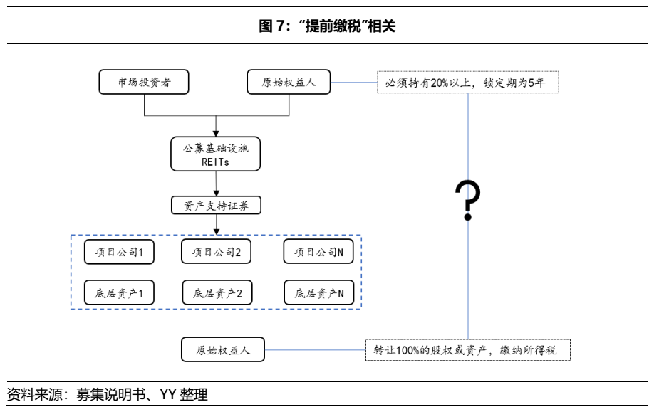 ③提前繳稅。根據(jù)《指引》規(guī)定,基礎(chǔ)設(shè)施資產(chǎn)原始權(quán)益人需要將項目公司的全部股權(quán)向REITs轉(zhuǎn)讓,該環(huán)節(jié)肯定要繳納企業(yè)所得稅。但是在REITs配售階段,原始權(quán)益人必須參與REITs戰(zhàn)略配售,持有不少于20%的份額,鎖定期為5年。這就意味著原始權(quán)益人實際上出讓了80%資產(chǎn)的收益,但繳納了100%資產(chǎn)口徑的稅收,且自持的20%份額只能在5年之后變現(xiàn)或轉(zhuǎn)讓,這就意味著這20%的部分是提前納稅的。