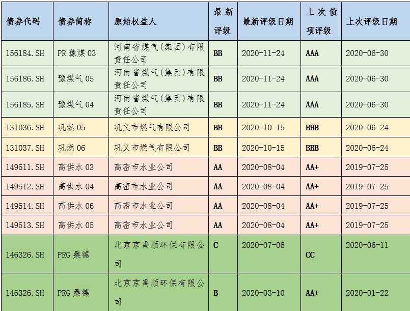 基礎設施ABS評級下調情況