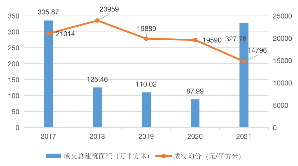 圖:重點8城2017年7月-2021年10月自持用地年度成交走勢