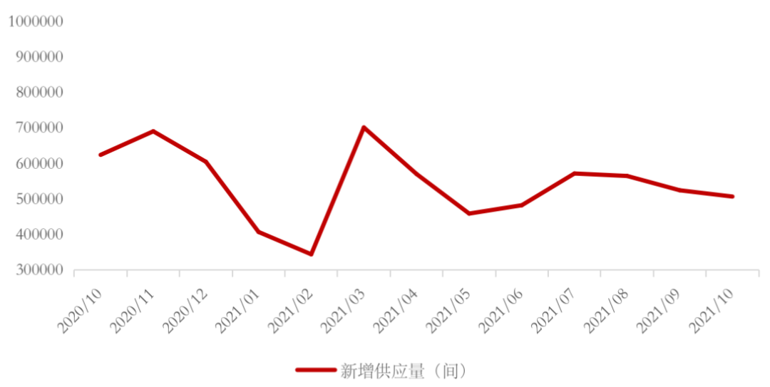 圖:2020年10月-2021年10月全國55城個人房源新增供應