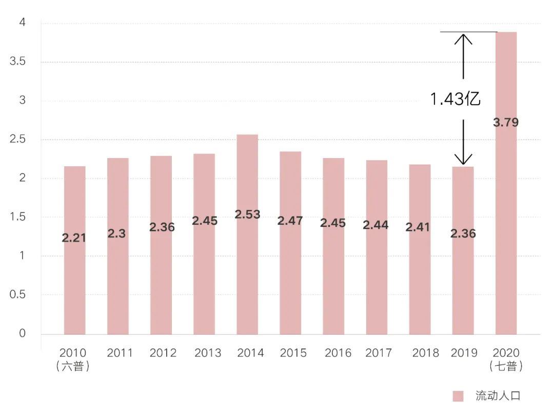 圖:第七次人口普查大幅修正流動人口數(shù)據(jù)(億人)