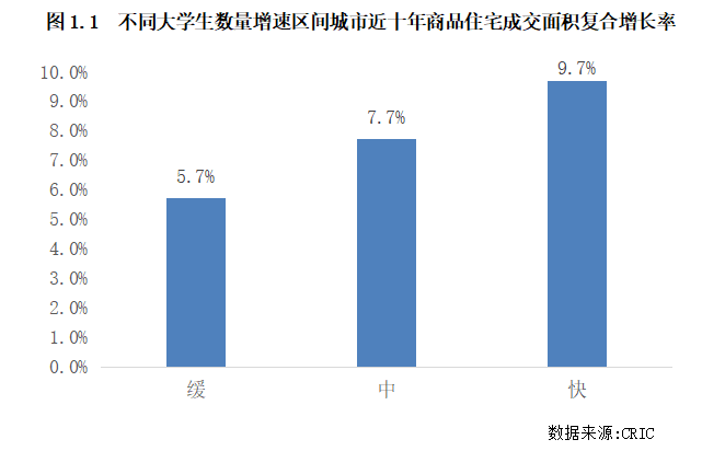在樣本城市的選擇方面,我們選取了常住人口規(guī)模相對較高的城市,包括所有的一二線城市及常住人口規(guī)模高于500萬的三四線城市,共計100個城市。這些城市的大學(xué)生數(shù)量占比在4%~42%之間不等,能充分體現(xiàn)在不同占比下,城市的大學(xué)生人口規(guī)模增長差異對住宅市場產(chǎn)生的影響。