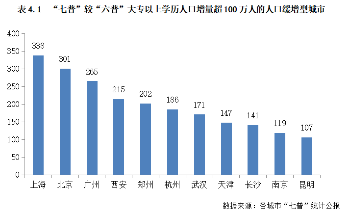 過去十年,中國大學(xué)生數(shù)量增長83%,遠快于人口總量5%的增速,按增速比計算,大學(xué)生增長領(lǐng)先幅度達到73%。但在大中城市中,不少城市大學(xué)生人口增長卻不如全國平均,典型如大連、哈爾濱、太原、南昌、北京、蘭州、武漢、南京等,大學(xué)生人口較常住人口增速的領(lǐng)先幅度均不及40%。