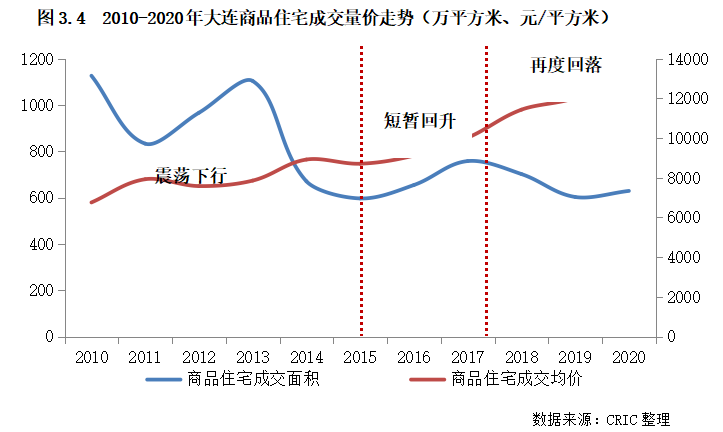 2、大連:規(guī)模震蕩下行,市場去化風(fēng)險凸顯