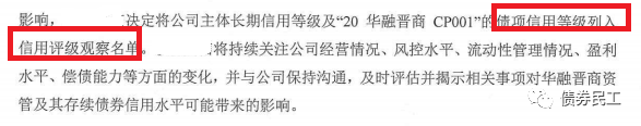 在此之前的2020年12月31日,華融晉商公告公司發行的“20華融晉商CP001”債項信用等級被列入信用評級觀察名單。