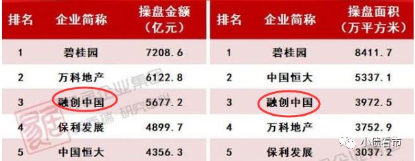 據克而瑞數據,2021年融創中國以5677.2億操盤金額和3972.5萬平方米操盤面積,位居行業老三地位,由于恒大爆發債務危機,其排名提升一位。