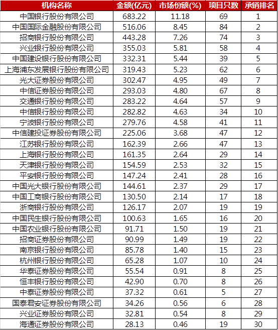 圖表3. 證監(jiān)會主管ABS承銷情況(部分)