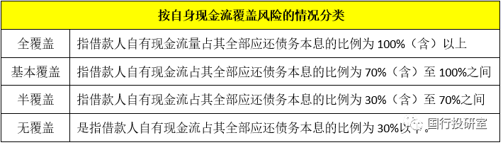 2013年銀監(jiān)會(huì)發(fā)布的《關(guān)于加強(qiáng)2013年地方政府融資平臺(tái)貸款風(fēng)險(xiǎn)監(jiān)管的指導(dǎo)意見》(銀監(jiān)發(fā)(2013)10號(hào))根據(jù)融資平臺(tái)自身現(xiàn)金流覆蓋情況將融資平臺(tái)分為全覆蓋、基本覆蓋、半覆蓋和無(wú)覆蓋等四類。當(dāng)然這一分類方式是動(dòng)態(tài)調(diào)整的,相當(dāng)于對(duì)融資平臺(tái)進(jìn)行動(dòng)態(tài)評(píng)級(jí)。具體如下: